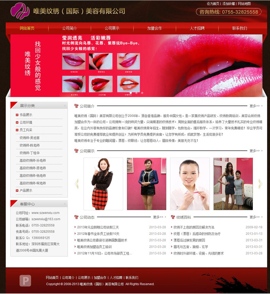 项目名称:唯美纹绣(国际)美容有限公司网站建设